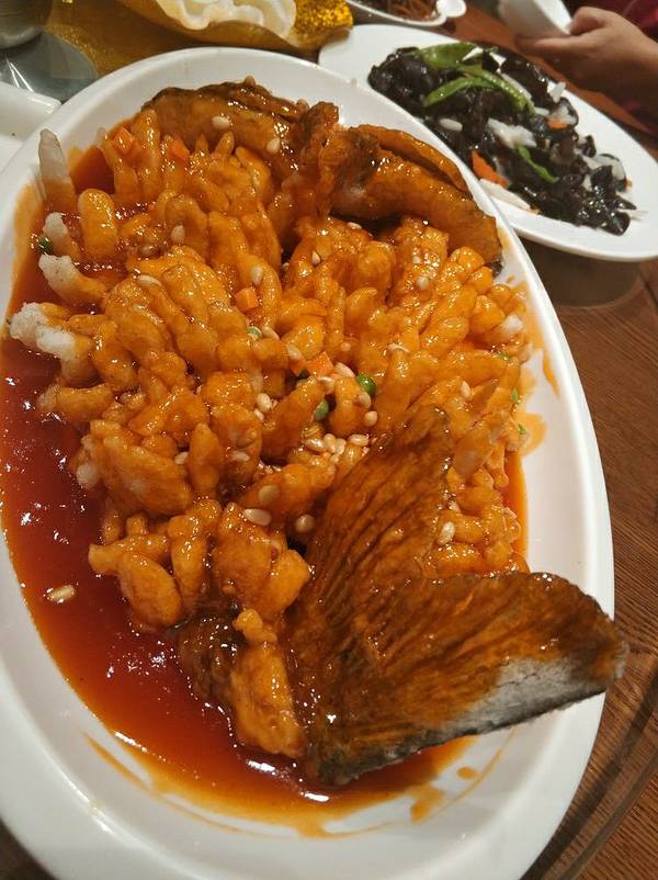 这家店来过好多次了,因为距离一位亲戚家很近,所以是家庭聚会的一个据点。 整体上感觉这家店的水平和质量一直在走下坡路,虽然很缓慢,但是很坚定,没啥回头的余地。 上次来的时候,没有虾片和碴子粥,现杀的一条鱼还被调了包,很不开心的写了评价,饭店老板邀请我再来体验,机缘巧合,再来评价一次。 这次感觉多少还是有点儿进步的,起码虾片和碴子粥有了。 我因为单位有事,去到都快下午一点了,仍然还有虾片和碴子粥,这点是好评。 但其他菜品还是很一般,品种也不全。比如我想吃点儿羊肉,他家店就只有大汗羊排一道菜,没有其他选择。 只有这大汗羊排一道羊肉菜也就算了,关键是,味道也不好吃! 以我这么爱吃羊肉的人,居然都没吃下去。 他家这道菜,也不知道什么时候做的,每次点了以后,上来都是凉的,口味也奇奇怪怪的,完全没有羊排那个口感和滋味,吃起来感觉味同嚼蜡,特别失败。 其他菜品还行吧,希望可以继续加油,三颗星鼓励一下。