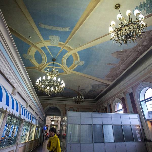 从红场到基辅车站也是坐地铁方便,中间还要转一站,距离倒不远。 基辅的地铁站也是出了名的漂亮,特别这一幅壁画,很多旅游团还专门过来看呢。 出了地铁站,在街对面就是商场,很容易找,商场的负一楼是超市,四...