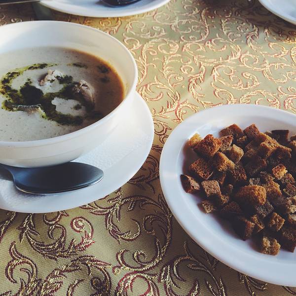 来之前做攻略时在利斯特维扬卡的“吃”上专门写了要去镇上最棒的餐厅Proshly Vek Cafe,还专门附带了照片,结果一天逛下来也没看见在哪。从滑雪场出来天已经快黑了,我们在车上正商量着吃什么,不经意就看见路边一家长得很像图片上的房子一闪而过。赶紧让司机停车,往回走了一段,终于找到了这家餐厅。 装修很有特点,墙上挂的好像都是很古老的渔具、工具什么的。