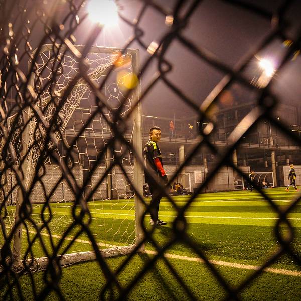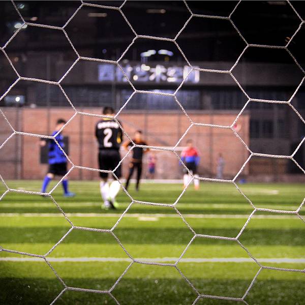 要特别说下这个足球场哦,普通的球场来头却很大。全神贯注的守门员,注视着球场上皮球的每一个动向西村大院