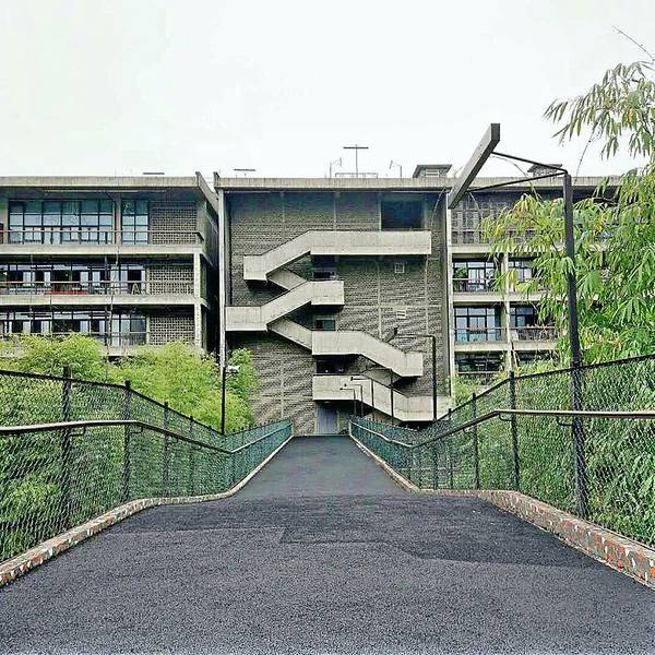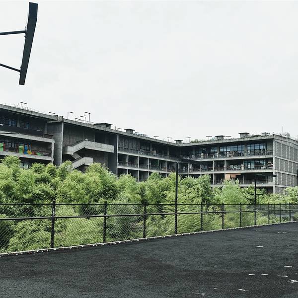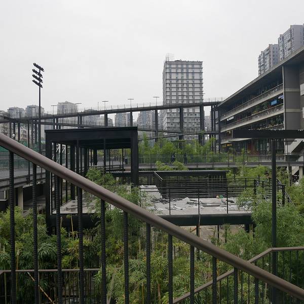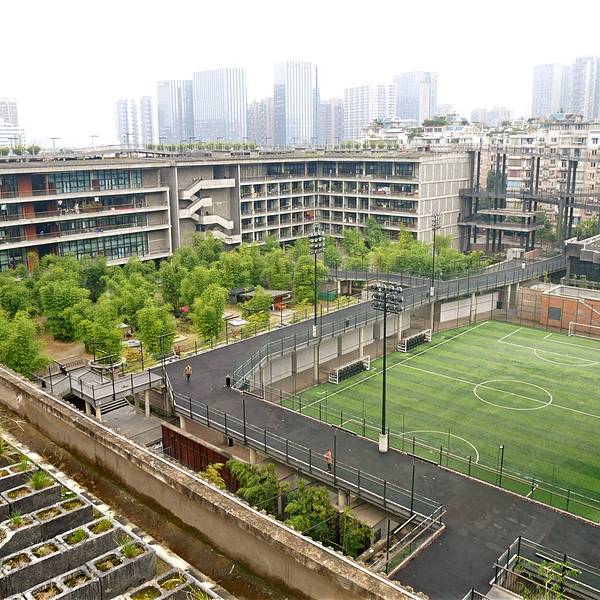 即使跟建筑圈子毫无关系的人也非常推荐来这里,因为这里上下穿行的步道和休闲自然的环境会让你对商业社区有全新的认识。而且这样垂直错落的建筑形态和粗野的外表面是你在其他地方见不到的。这是家琨对于中国传统元素的一种表达,个人认为比王澍的要更加真实和接地气一些,非常喜欢。不认识这个建筑的人乍一看可能会认为没有完工。。因为整个大院体量太大,想看全景一定要爬到最高。我们刚一到就往最高处走。这是在顶层的视角。在塑胶步道上走走逛逛很惬意大院中心的足球场。足球场太小了,从实用的角度来说,把三个合并成一个更好用。逛西村大院的体验就和看它的效果图照片一样,层次非常丰富,你既可以在舒适的塑胶步道上散步、也可以在清新的竹林里徘徊,或者到顶层的廊道上游走一圈(可惜我们去的时候顶层的廊道封闭了,不允许进入)。上下交错的楼梯通道让你的空间体验不仅仅局限于一个院子的平面,就好像一花一世界,一个社区承载了如此丰富的内容,生活在这里的人真的是非常幸福。交错的楼梯步道一直通向地下停车场不管从哪个角度看层次都很丰富铺地到这里就没有了,自然的泥土和茂密的竹子让你有一种置身桃源的感觉 展开