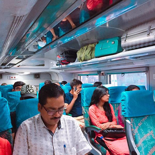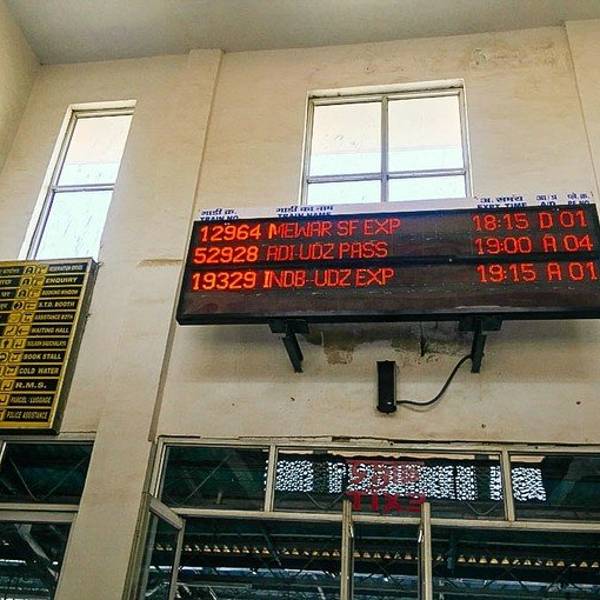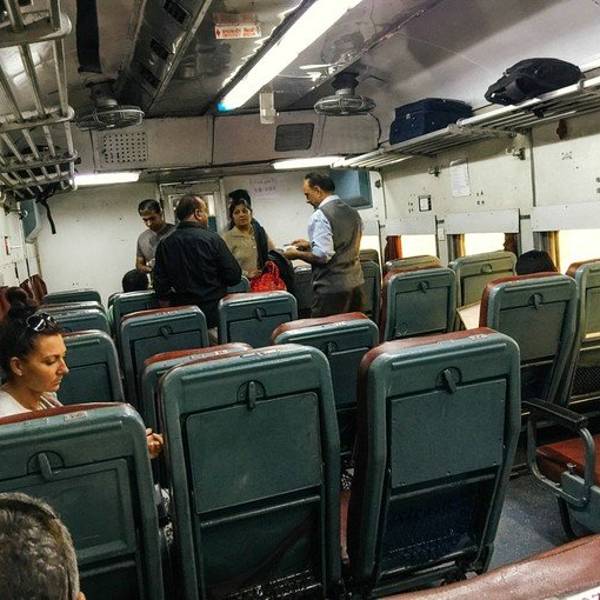 吃过午饭,再返回酒店,小坐了二十分钟,准时两点出发去火车站了。酒店离火车站大概2公里远,走到路口遇到个tutu车,问了价格,司机挺靠谱的,喊价50rs。于是直接上车,大概开了五六分钟就到火车站了。乌代布尔的火车站不大,第一次坐印度火车,规矩还不是太清楚,所以早到了火车站,研究下如何坐印度火车。印度火车不需要检票入站神马的,也没有安检,直接上车。走到门口,就有提示车次和停靠的站台。不过那个D2至今没有弄明白是神马意思。不知道是不是只有一个站台的缘故,只看到一辆火车。旁边有电子显示屏提示停靠车辆的车次和每节车厢所对应的编号。比如今天我们坐的是空调座椅的cc,所以对应的就是c1。车身上也标有车次,和车前往的方向。车找好了后,对应的车厢找好了后,你会发现车厢门边贴有一个乘客名单列表,找到你的名字和对应的座位信息,确认无误是这趟车就彻底的万无一失了。空调车厢大概离出发还有半个小时的时候才开门进入,进入车厢,发现座椅空间挺大的,有些坐飞机头等舱的感觉。虽然座椅和车厢不算特别干净,但是也挺舒适的。乘客也大多挺干净的,没有神马围观的现象发生。