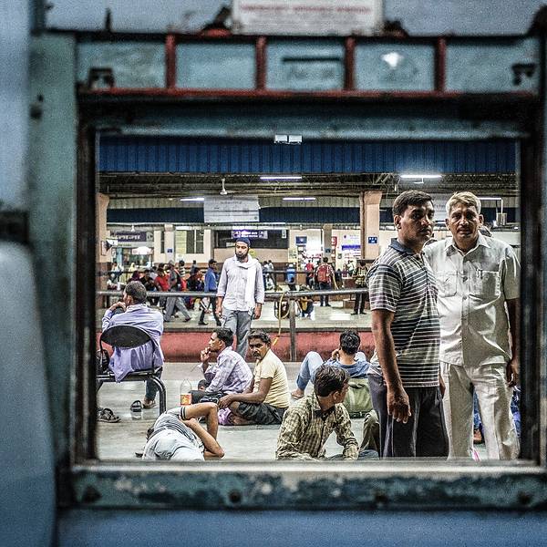 火车是始发站,我们准时上车了,窗外等火车的印度小伙,很有喜感的画面