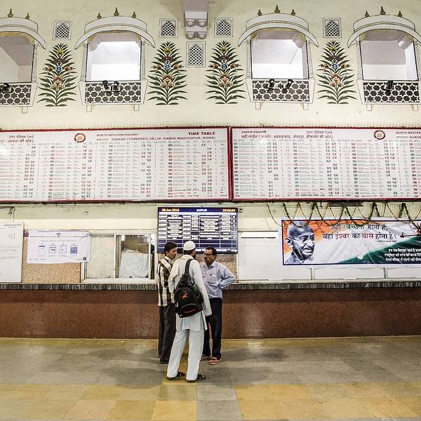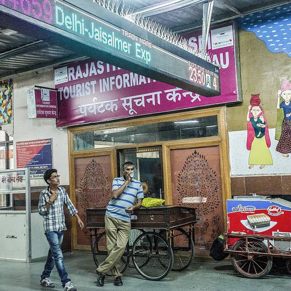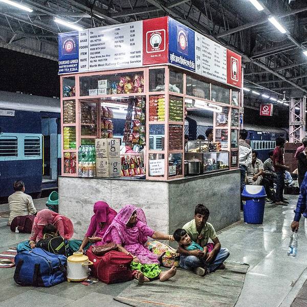 火车是始发站,我们准时上车了,窗外等火车的印度小伙,很有喜感的画面 自从在沙漠吃过一顿早饭,我们就略过了午饭,晚饭,和第二天的早饭感觉我爸已经饿得要吃人了 清晨到了斋普尔,我们在火车站的waiting room...
