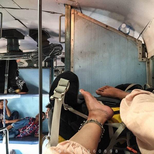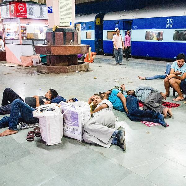折腾一天也没休息,晚上十一点多到车站困得不行,地上睡的都是些乱七八糟的人,有老人小孩还有等车的印度人,有些就地睡,有些铺了报纸海报之类的,条件不错的带了被单。问了她们都不睡觉的有点脏还有老鼠,实在没忍住铺上睡袋躺下了,旁边睡的是位年轻妈妈,她睡得很熟,旁边的孩子没有盖被子也没有打地铺,妈妈也没有抱住孩子任他小小身体在地上蹭来蹭去,让人看了着实心酸