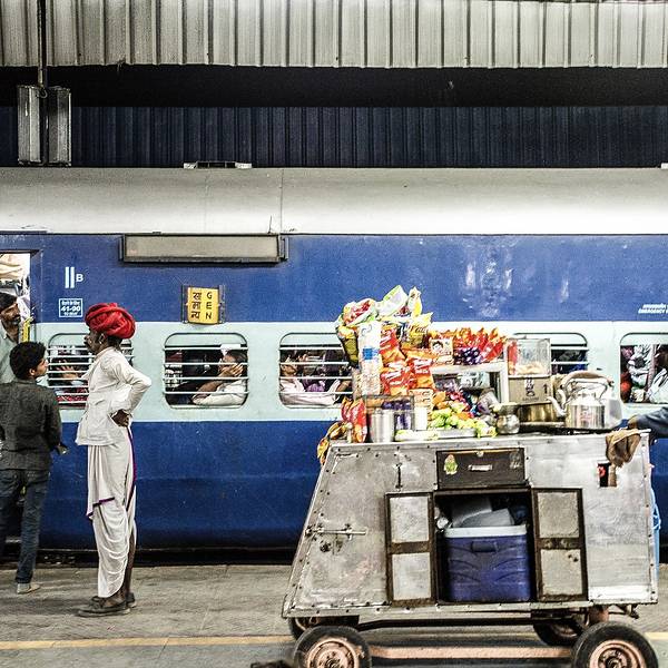 离开斋普尔,要坐通宵火车去杰伊瑟尔梅尔了。都认为印度是个开挂的国度,火车开挂就是其中之一。所以专门开个段落发一下印度的火车。其实在印度真没见多真正的开挂,唯一觉得开了挂的就是火车门在行驶中可以随便打开。其他的,有很多方面在软件上甚至比国内要做的好。来一些印度火车上的千姿百态,算是印度的一到风景线了。斋普尔的火车站头顶行李我们已经免疫了火车司机,很帅很有味道的印度人席地而坐不算什么,席地而睡也是很正常的事情车站的小卖店上车拍下普通印度国民的车厢,其实老公对坐这种车厢没所谓,但是我为了安全,全程还是买了只有高种姓和外国人才能购买的车厢,安全!席地而睡,在印度很正常,仿佛他们的地很干净印度的乘务员,所有乘客的信息都在这本上,高等车厢还会在门口贴上本车厢的人员