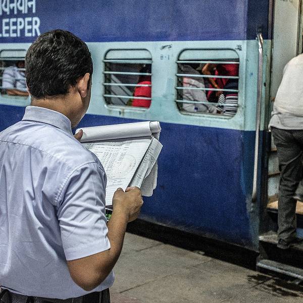 - 印度的乘务员,所有乘客的信息都在这本上,高等车厢还会在门口贴上本车厢的人员。斋普尔的火车站