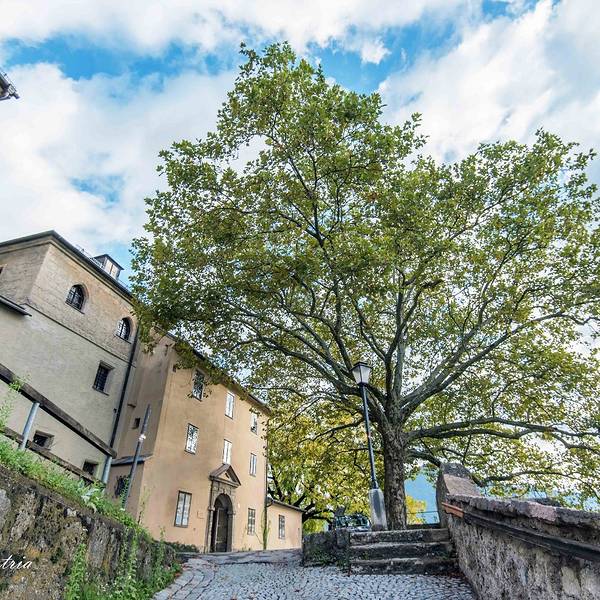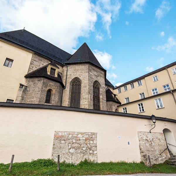 侬山修道院在萨尔茨堡城堡东边的山上,此教堂于1696年开始兴建,1707年完工,至今仍是宗教综合建筑的典范。它的雄伟外观和依山而建所形成的气势,让人叹为观止。 修道院是《音乐之声》玛利亚首次出现的地方。玛丽娅大学毕业后,乘火车来到萨尔茨堡,作为见习修女。她在特拉普男爵家作女家庭教师之后,于1927年与特拉普男爵在侬山修道院结婚。 《音乐之声》在侬山修道院拍摄不少场景,庭院里表演的歌曲玛丽娅,孩子们到侬山修道院的门口请求玛丽娅回家,在逃跑一幕中,轿车停放在侬山修道院的门外等等。