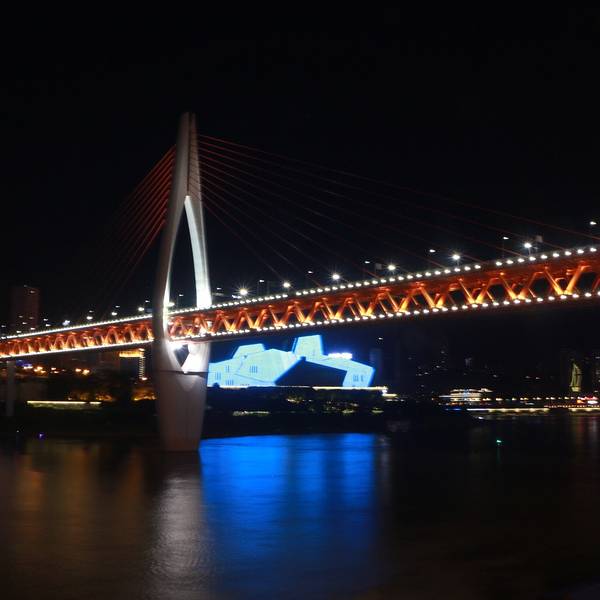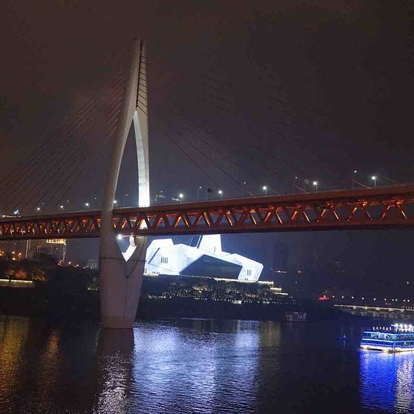 重庆千厮门嘉陵江大桥,全长720M,起于重庆市渝中区,在洪崖洞旁跨越嘉陵江到达江北区江北城,并在渝中半岛通过连接隧道与东水门长江大桥北岸桥台相接,为跨江公路和轨道交通两用桥。通车后,从江北嘴到渝中区沧白路仅需几分钟。重庆的名片--美食,美女和夜景。以前到重庆来必要行程之一就是到南山一棵树看重庆夜景,现在还有一个选择,就是到重庆的滨江路去看,无论是南滨路还是北滨路,重庆的夜景都能让你叹为观止。这是我们在北滨路拍到的夜景照片,图一是重庆歌剧院,图八是歌剧院完整造型,一到晚上歌剧院外墙回有灯光颜色的变化,可惜评论只能发九张,不然我能集齐所有颜色!图二是渝中区景色,连着江上倒影,美不胜收。图三好像是金融中心大厦,白天看到只能用金碧辉煌来形容,壕气!图四是渝中区夜景。图五是重庆著名景点洪崖洞,其实晚上拍出来会更好看,但是这样大家能看得更清楚,洪崖洞有老重庆的吊脚楼,就是老重庆生活在现代社会的写照,很多游客到重庆来洪崖洞也是比到之处!图六就是千厮门嘉陵江大桥了,横跨嘉陵江,这是我在游轮上拍到的桥下的景色。图七为千厮门大桥晚上夜景,是不是很美很壮观,我是站在重庆歌剧院的角度拍的。图八是歌剧院白天景色。最后一张照片是经常出现在国内外影视作品中的重庆特色,过江索道。是不是很洋气,其实在本土重庆居民而言,索道就只是一种交通方式,在早晚高峰,江对岸的人要到这头上班会坐索道,价格也就是公共交通的价格,早晚高峰过后,游客做索道参观游玩的话票价来回好像是40快,翻了几倍...而且要排很久的队,即便这样,想要来体验索道的游客朋友还是乐此不疲!