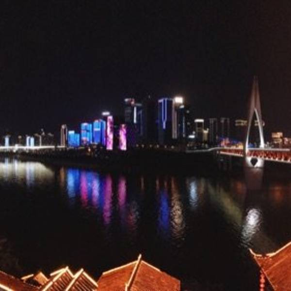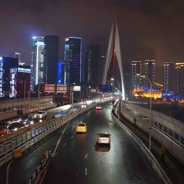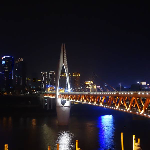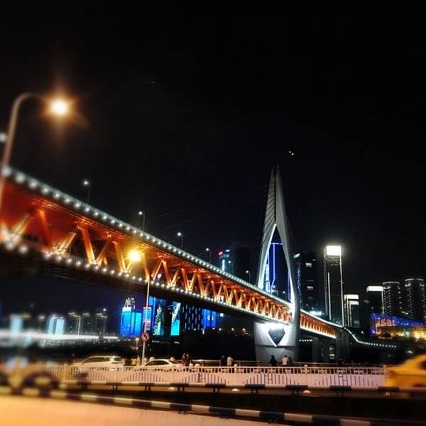 晚上的时候来洪崖洞看重庆夜景,旁边的大桥便是千厮门嘉陵江大桥,近观感觉非常的霸气,搭配上夜景,宛若明信片一般的风景。过来这边的交通也比较方便,洪崖洞的对面就有公交车站,还没下车,就看到不远处举着相机满满的人群。推荐先逛洪崖洞,在沿着嘉陵江一路步行过来,散散步,还可以近距离的欣赏大桥以及夜景。每个角度都有自己独特的美。而且在这里,还可以体验到上了一层楼,又是一条街的奇妙,很难在其他的景区体验到,嘉陵江大桥有专门的人行道,供人行走,有时间的话,推荐大家沿着桥走一圈,往返下来一万多步,速度快一些的话,40分钟左右,穿上舒服一些的运动鞋,一边在桥上走,一边用照相机记录下两岸的风景,凉风缓缓拂过,很是惬意,两岸的夜景与灯光也是很棒的。