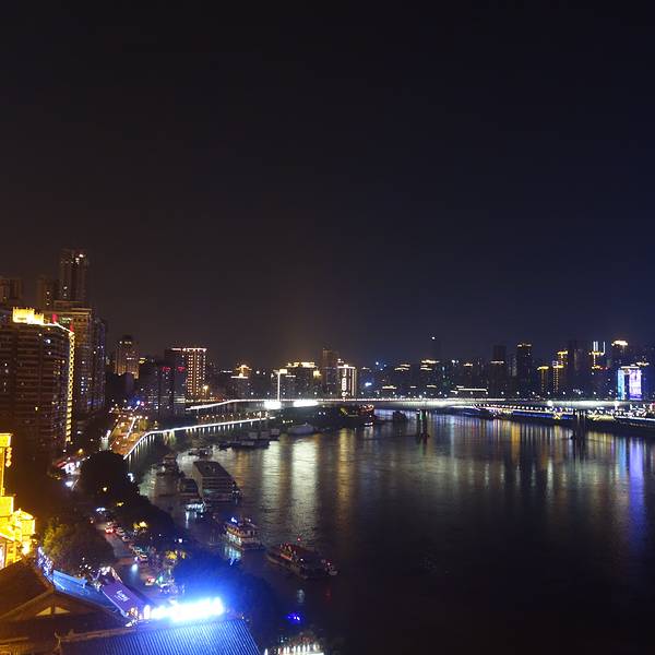 走出洪崖洞,来到了嘉陵江边,沿着江边闲逛,两岸的夜景还是不错的,那些或明或暗的灯光,倒映在江水里 ,过往的游船激起微波,将灯光一片片撕碎,碎片顺着江水远去。晚安,妩媚多情的重庆 !