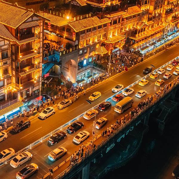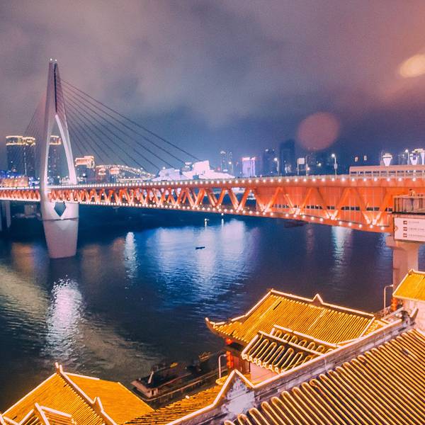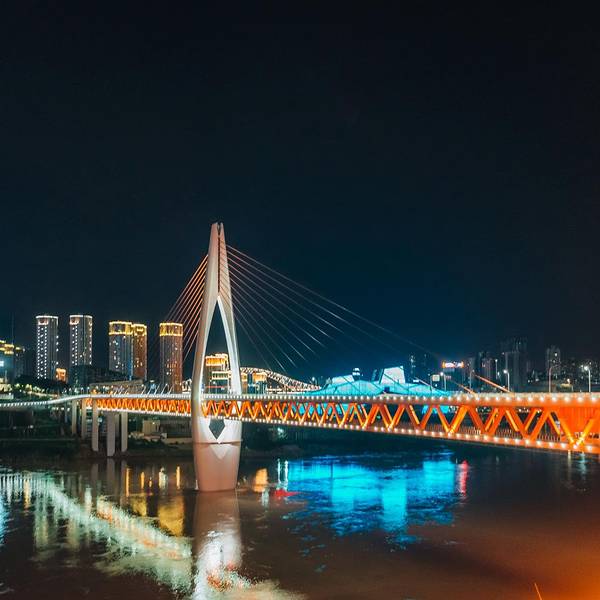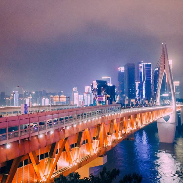 重庆千厮门嘉陵江大桥,连接了重庆市渝中区与江北区,横跨了嘉陵江,位于洪崖洞旁边,可以直接从大桥走到洪崖洞的楼顶,在嘉陵江大桥上拍摄洪崖洞也是绝佳的位置,建议可以把大桥和洪崖洞连起来一起游玩。 晚上的...