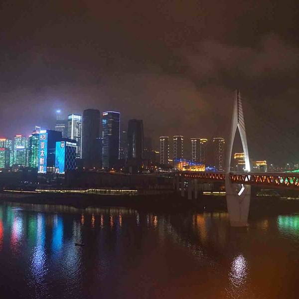 重庆千厮门嘉陵江大桥,全长720M,起于重庆市渝中区,在洪崖洞旁跨越嘉陵江到达江北区江北城,并在渝中半岛通过连接隧道与东水门长江大桥北岸桥台相接,为跨江公路和轨道交通两用桥。通车后,从江北嘴到渝中区沧白路仅需几分钟。重庆的名片--美食,美女和夜景,在这里一览无余。以前到重庆来必要行程之一就是到南山一棵树看重庆夜景,可是路程远且公交并不方便,而且游客还很多,并不能尽兴的观赏。现在还有一个选择,就是到重庆的滨江路去看,无论是南滨路还是北滨路,重庆的夜景都能让你叹为观止。这是我们在北滨路拍到的夜景照片,重庆歌剧院湖蓝色的外形颜色,和江水相互映衬,犹如江边一颗极大的鹅卵石。一到晚上歌剧院外墙会有灯光颜色的变化简直美不胜收。歌剧院对面就是渝中区景色,一到晚上,伴随着精彩的灯光效果,连着江上倒影,宛如童话一般。金黄色双子塔是重庆金融中心大厦,白天看到只能用金碧辉煌来形容,壕气,到了晚上,金属的高塔却又添了一丝浪漫!朝天门码头也是来重庆的必玩景点,除了看两江交汇意外,还可以乘坐邮轮看看江边风景。重庆著名景点洪崖洞,清明节期间火遍抖音,网红景点,白天长这样!其实晚上拍出来会更好看,但是这样大家能看得更清楚,洪崖洞有老重庆的吊脚楼,就是老重庆生活在现代社会的写照,很多游客到重庆来洪崖洞也是比到之处!游轮会经过千厮门嘉陵江大桥了,这是我在游轮上拍到的桥下的景色。千厮门大桥晚上夜景,是不是很美很壮观,我是站在重庆歌剧院的角度拍的。还有重庆的过江索道,经常出现在国内外影视作品中的重庆特色,是不是很洋气,其实在本土重庆居民而言,索道就只是一种交通方式,在早晚高峰,江对岸的人要到这头上班会坐索道,价格也就是公共交通的价格,早晚高峰过后,游客做索道参观游玩的话票价来回好像是40快,翻了几倍...而且要排很久的队,即便这样,想要来体验索道的游客朋友还是乐此不疲!