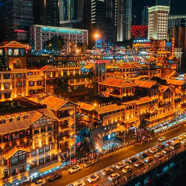 洪崖洞是历史遗留的古代城门,位于洪崖门外岩下崖边,是一个巨大石窟,又叫洪岩洞、神仙洞。其实漫步在山城重庆,倘若时间充裕,便会惊喜不断地发现还有很多的古城墙值得细细体味。但唯有洪崖洞保留了吊脚楼和巴渝文化的风貌特色,将古代建筑与现代娱乐结合于一体,既能满足游客观赏玩乐的需要,又能感受到新兴山城浓浓古朴的生活气息。更重要的是,在这里似乎融合了大重庆所有的一切,成为了诺大山城的一个窗口与缩影。大概这就是人人来重庆必到洪崖洞打卡的缘故吧。