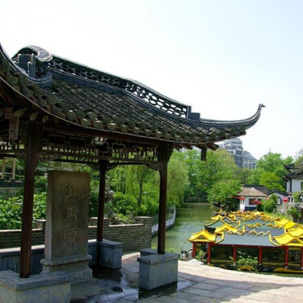 丰乐上街沿着北护城河从冶春茶社起,绕过清代的皇室的天宁寺行宫遗址的小土坡,到御码头、天宁寺,转而走过一段幽静的河边小道,直达史可法纪念馆。