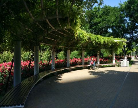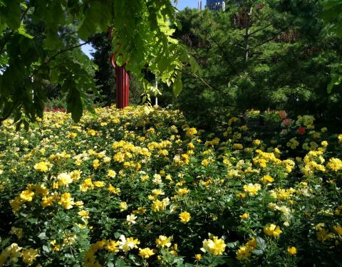 正值五月这里到处都是五颜六色的月季花,在阳光下显得分外妖娆,整个公园都飘着淡淡的花香正值五月这里到处都是五颜六色的月季花,在阳光下显得分外妖娆,整个公园都飘着淡淡的花香。人们在此休闲健身,展现着自己的美好生活。