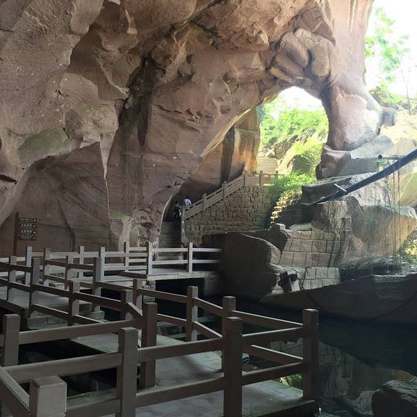 野人洞因包定《和蛇蟠岛韵》一诗中的“野人家住神蛇顶”得名,野人是指采石工、海盗和岛民等山野之人,野人洞即他们当年的栖身之所。 “谁言鬼斧神镂,竟是残山剩水”,野人洞利用千年采石洞窟改造成探秘之旅,入园路线只有一条,引导游客步步登高,了解古代采石过程。野人洞向你展示千年斧凿后的“残山”奇迹,也邀你一起体会山野穴居的粗旷和写意;蛇蟠岛的悠悠历史,海市红楼的款款风情,都是你不想挪脚离去的种种理由。
