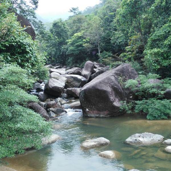 石门谷景区山清水秀,沟壑纵横、溪流潺潺,大小石头满布河床,青峰浴水,满谷清凉,花木繁茂,绿树相映。这里是一片处于原始状态的热带雨林,原始植被完好,景区内古木参天,并蕴藏着丰富、繁多、珍稀的植物资源。