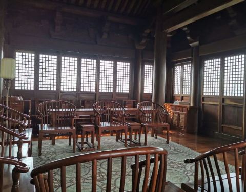 底楼旁边的建筑有点局促,挤在一起,不能很好地看到楼顶。东南大学杜顺宝教授设计