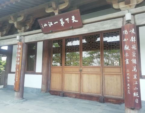 底楼旁边的建筑有点局促,挤在一起,不能很好地看到楼顶。东南大学杜顺宝教授设计位于北固山后峰绝顶之上。始建于北宋(一说南唐)甘露寺内,以唐代李德裕“多景悬窗牖”诗语为名。传说是孙尚香的梳妆楼,吴国太在此相的刘备这位女婿。宋元以来,为仕宦达官、骚人墨客宴集歌吟之所。 底楼旁边的...位于北固山后峰绝顶之上。始建于北宋(一说南唐)甘露寺内,以唐代李德裕“多景悬窗牖”诗语为名。传说是孙尚香的梳妆楼,吴国太在此相的刘备这位女婿。宋元以来,为仕宦达官、骚人墨客宴集歌吟之所。 底楼旁边的建筑有点局促,挤在一起,不能很好地看到楼顶。疫情期间,楼也不开,所以无法上去看到“多景”是什么样子。如果不是正好遇到一位老师在给朋友讲解,甚至都不会抬头,从屋檐之间看到米芾题书“天下江山第一楼”匾额。2009年,旧楼危陋,重建在后峰西侧绝壁之上。东南大学杜顺宝教授设计。2011年6月兴工,2012年4月落成。新楼高二层,仿宋式歇山顶,构以楠柚,辅以廊亭,连以飞虹。 2009年,旧楼危陋,重建在后峰西侧绝壁之上。东南大学杜顺宝教授设计。2011年6月兴工,2012年4月落成。新楼高二层,仿宋式歇山顶,构以楠柚,辅以廊亭,连以飞虹。 展开