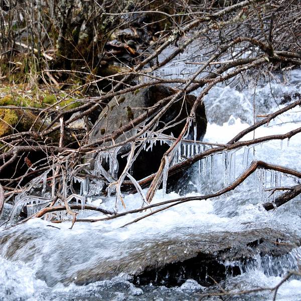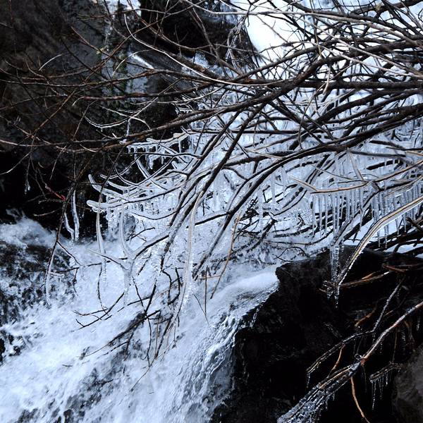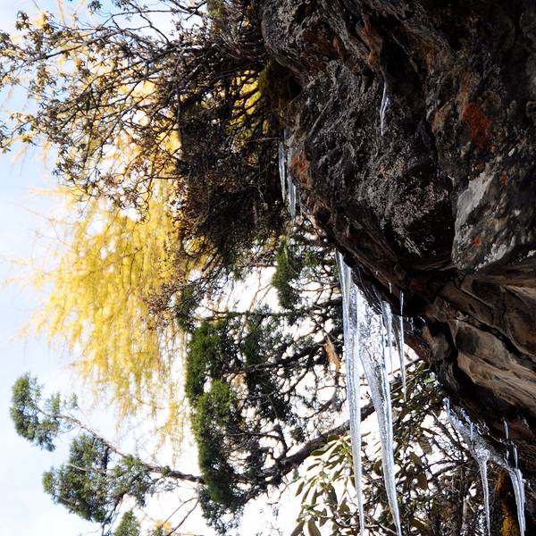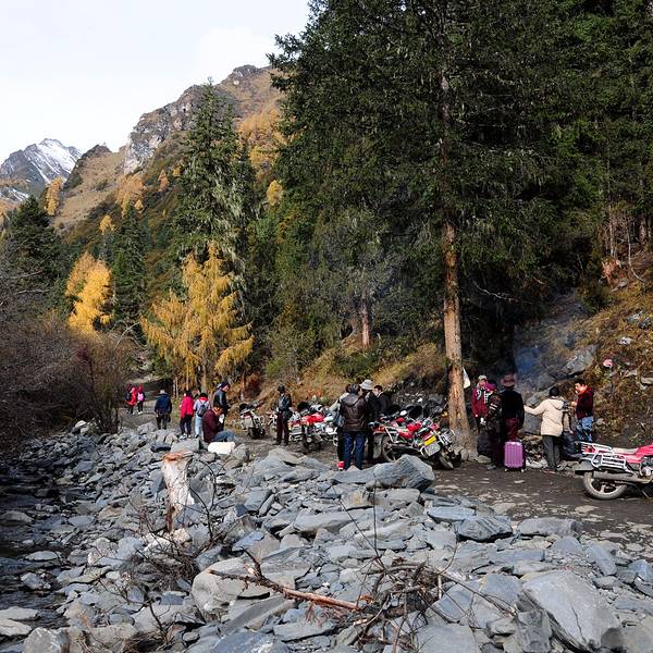 从门口到景区停车场有7公里远,下车后开始步行,顺着河边的小路走有大大小小的瀑布,可是早上的天空灰蒙蒙,感觉没啥大的亮点,倒是树枝上挂着的冰挂很漂亮。800米的上坡路走走拍拍还不太累,在一个小小的湖边一群摩托车司机在烤火取暖,说是到上面一个牧场要大约4.5公里,我们不想在海拔3700多的地方还去走上坡路,就每人50元骑(坐)摩托上山。