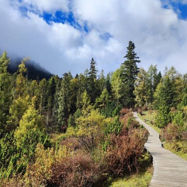 玛嘉沟景区马尔康过去一个半小时左右,路况很好,最重要的是国庆人也超少,可以说是很小众的景点了。门票包含旅游小巴,60块钱性价比很高。景区海拔不算.高,徒步难度很初级,都是木栈道。