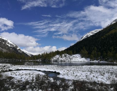 3️⃣ 不要错过高山海子中的曲美措,在海拔3950米的高度感受湖面与雪山的倒影。记得预防高反哦。