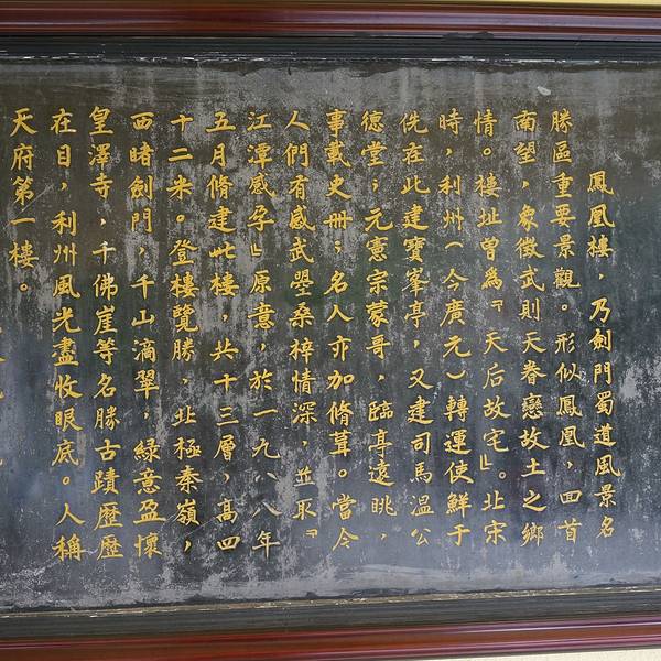 远眺恰似凤羽,色泽金黄光亮。楼内梯步呈方形,盘旋而上,直至楼顶。楼层分南北错落各半,因此,从楼里下部仰视,凤凰楼则是25层,那自上而下逐渐由北而南翘起的檐角,形成既往北飞、又回首南望的美姿,给人以灵动飘逸的感觉。象征着武则天虽北入唐宫,却又难舍故乡蜀地之意。历史,穿过时光的隧道来到今天。改革开放20多年,女皇故里广元的政治、经济、文化、建设有了突飞猛进的发展。登上“川北第一楼”凤凰楼,鸟瞰山下,城市景色尽收眼底。朝北,嘉陵江水碧波荡漾,浩浩荡荡,流过广元城池;望南,崭新的利州工业开发区与清粼粼的南河水交相辉映,形成了南河与嘉陵江“二水合秀”的迷人景观;向西,乌龙山下扼蜀道咽喉的宝成线南北通衢,正昼夜不息地输送着人流、物流;看东,东坝拔地而起的一幢幢琼楼玉宇,楼内每一层都有当今名人的书画作品。登楼观赏,广元全城历历在目,新城老城融为一体。滔滔嘉陵江,潺潺南河水像两条玉带从城中穿过,鳞次栉比的高楼玲珑别致,五彩缤纷,远处的群山,重峦叠嶂,似龙腾虎跃。古老的皇泽寺、千佛崖,撒播着古代文明,奔驰的列车与现代高科技企业又把现代文明广播人间,登临凤凰楼,无不有“心旷神怡,宠辱皆忘”之感。凤凰楼不愧为当今造型独特,宏伟壮观的天下名楼。 展开