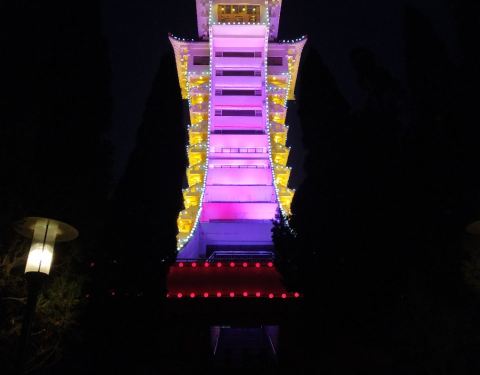 可惜天色晚了,还有雾霾,尴尬了,不然四面环山,郁郁葱葱,应该是美景尽收眼底的凤凰楼,据说是女皇武则天降生时有凤凰出现,为了纪念而建造!一出广元站就看到了这个建造别致的楼,在广元逛了一天,傍晚才转到凤凰山上去,登到楼顶可以看广元全貌!可惜天色晚了,还有雾霾,尴尬了,不然四面...凤凰楼,据说是女皇武则天降生时有凤凰出现,为了纪念而建造!一出广元站就看到了这个建造别致的楼,在广元逛了一天,傍晚才转到凤凰山上去,登到楼顶可以看广元全貌!可惜天色晚了,还有雾霾,尴尬了,不然四面环山,郁郁葱葱,应该是美景尽收眼底的!下来的时候天已经黑了,楼突然亮了,还会变色,好惊喜好意外! 展开