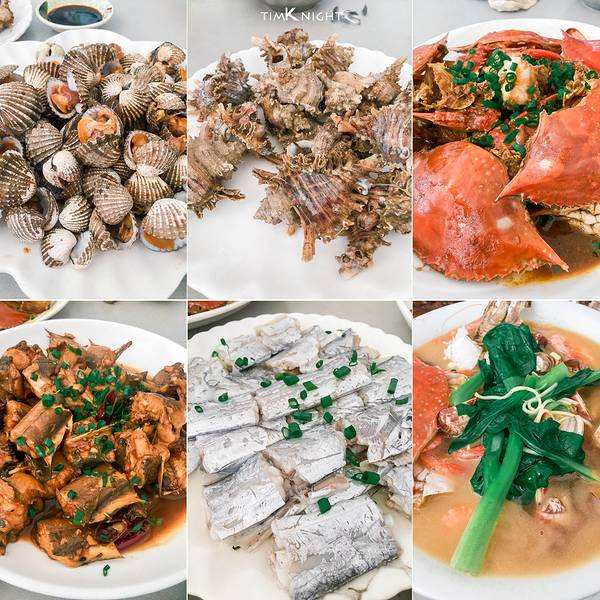 我们一开始只知道枸杞枸杞枸杞,来了这里才知道,吃住都是嵊山便宜,而且大部分景点都在嵊山岛,譬如去东崖绝壁看日出,譬如去无人村看绿植,譬如后面我们提到的夕阳湾,基本都在嵊山岛,最关键的是,枸杞岛海鲜餐饮店面游客居多,而嵊山岛,当地人也出来吃,游客置身其中,更有种入乡随俗的真实感。一直往里面开,几分钟后,会看到一个三岔路口口,路口左边是“海鲜市场”。我们看了看时间已是11点,大伙决定先吃饭,饭后继续溜达。