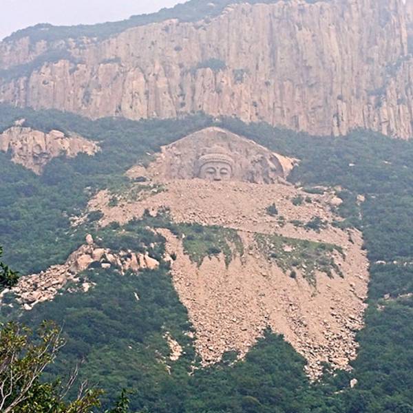 坐落在山海关城北5公里燕山脚下的五佛山森林公园,是在原国家森林公园、地质公园、国家4A级景区角山风景区和长寿山景区的基础上开发建设的,公园占地面积48.8平方公里。目前,位于公园西北部的五佛文化区中的人文景观已基本成形,将成为世界上最高石佛像的“五方大佛”也正在雕刻中。据了解,雕刻好的五尊大佛身高将达81米,比乐山大佛要高出10米,加上莲花座,依山开凿的大佛将达到99米。“五方大佛”分别坐落在五佛广场的东、南、西、北、中五个方位,与周围九重天、五方佛舍利、望海观音等景观共同构成一个具有浓郁佛教文化气息的五佛文化区。关于五佛山的名称在当地有一个优美的传说——相传徐达修长城时,找到军师刘伯温来帮忙,军师说:“五佛镇关,太平万年。你此去一定要找到靠山,条件具备,一切无事。” 一日来到平林寺,拜访一位方丈,方丈说:听师傅讲,这里在北齐时就修了一道边墙,俗称老边。风水先生修城时在这里看到有五佛,就把边关修在这里一直到海边,应了“五佛镇关,太平万年”之说。后来徐达在关成东墙上修了五座城楼,塑了五座佛像供奉在楼内,时间长了五佛镇关被老百姓叫成五虎镇关了。