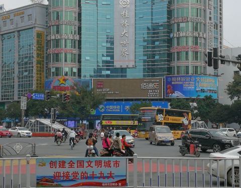 桂林中心广场在中山路上,边上就是正阳步行街,广场下面像个小商品市场,我们是去看桂林瀑布大酒店的...