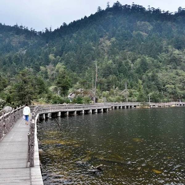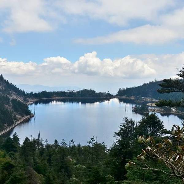 黑龙潭,又称蜀伙阿诺,湖面35公顷,螺髻山最大的冰川湖,湖水呈黑色。