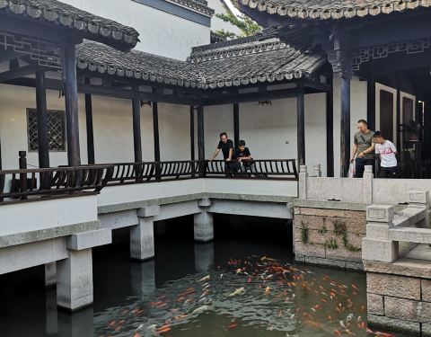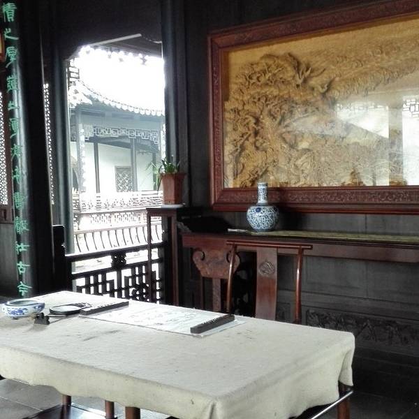 ...院子里,很多作家金庸的介绍、他的小说、他用过的一些用品,进门就有一个鲤鱼池,很热情的来欢迎游客中式园林的院子里,很多作家金庸的介绍、他的小说、他用过的一些用品,进门就有一个鲤鱼池,很热情的来欢迎游客。