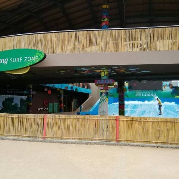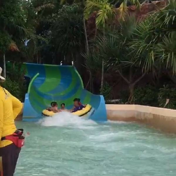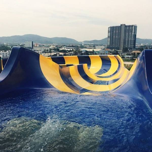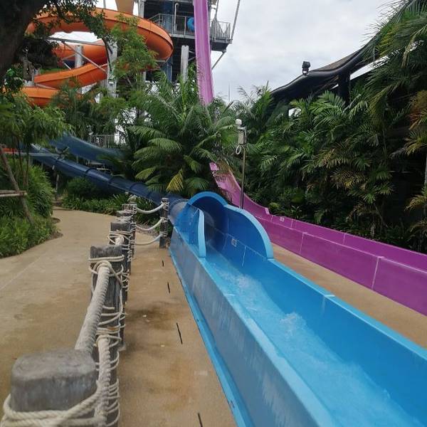 华欣热带水上丛林世界是集生态保育及娱乐设施于一身的主题乐园,也是亚洲为数较少的水上丛林主题乐园,距离华欣市区很近,交通方便。 乐园的环境依照热带雨林原版打造,各种惊险刺激的滑梯埋藏在树林里,穿行其间有种丛林飞越的感觉。 Abyss滑梯高28米,宛如一个大喇叭,每次可载6人,感受时速45公里的下坠速度,刺激万分。 Boomerango滑梯滑落时会经过高31米人造瀑布Vana Nava Falls,让你饱览沿途的壮观景象。 △ 惊险刺激的游乐设施 △ 各式各样的海滩海浪模拟器 △ 亲子合家欢