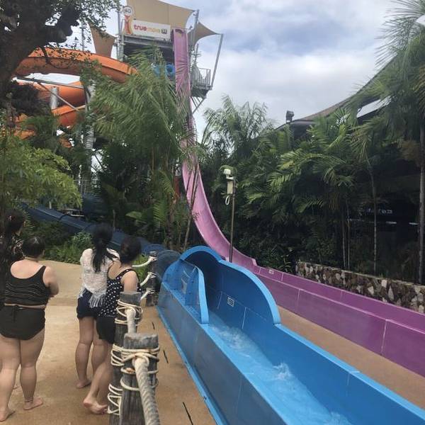 只是必须满5人才能组合成一圈玩耍,既便互不相识的游客也可以让工作人员搭配为一组,过好体重磅秤后...在进入乐园之前,大门口的服务台处每人配带一枚手环表,需得先行充资作为在乐园中的各种饮料餐食消费,花不完的部分离园时退现金。整个水上乐园所有的游艺体验设施都与水流作用力相关,随说各式的设施看着像小朋...在进入乐园之前,大门口的服务台处每人配带一枚手环表,需得先行充资作为在乐园中的各种饮料餐食消费,花不完的部分离园时退现金。整个水上乐园所有的游艺体验设施都与水流作用力相关,随说各式的设施看着像小朋友的天地,但入园的还的确有好多欧洲的中青年特地来体验一把的,不过主力群体都是泰国的鞋童和中学生为主。最带尖叫的项目要数滑滑管道和冲浪隧道!这几个项目都需要走上游艺设施的步阶楼梯,在天台上取上救生圈,人躺在圈圈的气囊上,臀臀坐在圈圈内,通过水流的滑动力,让救生圈圈在弯弯曲曲的、漆黑的管道中七上八下的排泄进地平面上的泳池中,全程很走肾,虽说管道看似很狭窄,但即便是成年人也没可能被管壁撞痛。这些项目可以双人滑用8字形的圈圈前后坐一对,也可以单人体验标准形状的救生圈独自进入管道。另外还有二台设施可以同时体验多人滑的高空隧道,游艺方式与管道有点类似,只是必须满5人才能组合成一圈玩耍,既便互不相识的游客也可以让工作人员搭配为一组,过好体重磅秤后,就一起入座宝莲台一般的超大浮生圈,从天台上滑进隧道,要说刺激那可的确是没得说……一直冲到地面的池子内会有水手接手扶大伙爬出来。所有的设置可以不限当日不限次数地耍N回只要体力充沛。 展开