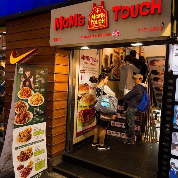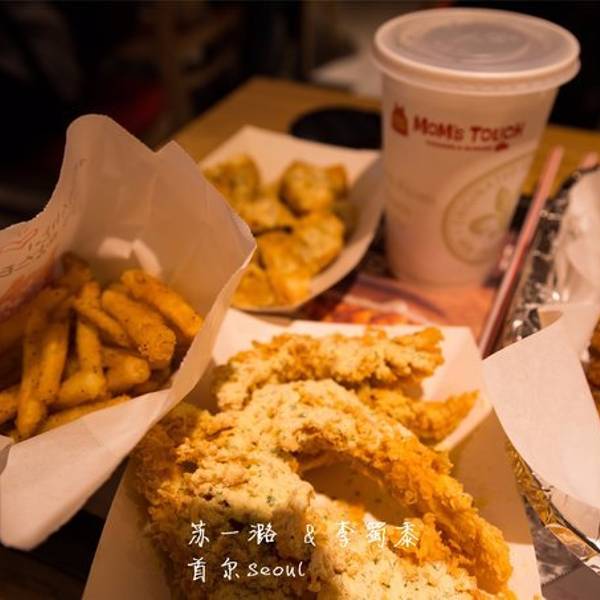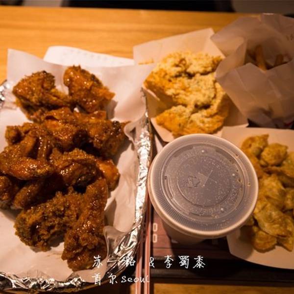 这家炸鸡店有很多连锁店,我们在首尔看到了好几家,我们去的这家炸鸡店就在明洞,店铺招牌不是很大,但是能看到有人排队。其实排队是为了等电梯,因为店面在5楼。乘电梯上去后就能看到这家炸鸡店啦。菜单有图片,有中文,点菜很方便。主要是炸鸡,汉堡,薯条小吃这些,也有炸鸡和薯条套餐。主打炸鸡就像用糖浆裹了一遍,口感偏甜。而无骨炸鸡并不油腻,肉质鲜嫩,也是偏甜口。我想说套餐里的炸鸡真的很多!俩人吃都够了!我们没吃完,还打包了。另外饺子也不错!人均60元左右。外国人喜欢来,韩国人也不少。