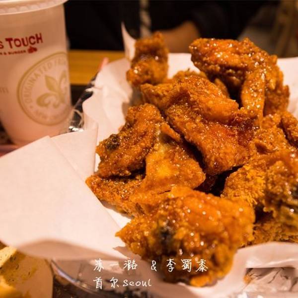 这家炸鸡店有很多连锁店,我们在首尔看到了好几家,我们去的这家炸鸡店就在明洞,店铺招牌不是很大,但是能看到有人排队。其实排队是为了等电梯,因为店面在5楼。乘电梯上去后就能看到这家炸鸡店啦。菜单有图片,有中文,点菜很方便。主要是炸鸡,汉堡,薯条小吃这些,也有炸鸡和薯条套餐。主打炸鸡就像用糖浆裹了一遍,口感偏甜。而无骨炸鸡并不油腻,肉质鲜嫩,也是偏甜口。我想说套餐里的炸鸡真的很多!俩人吃都够了!我们没吃完,还打包了。另外饺子也不错!人均60元左右。外国人喜欢来,韩国人也不少。 电 话:777-6073 地 址:首尔市中区明洞2街 52-18