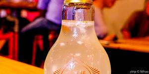 - ...,鸭腿很大一个,肉质很嫩,招牌饮料非常清爽,而且用的器皿像灯泡的杯子,老板人不错,互动挺开心的