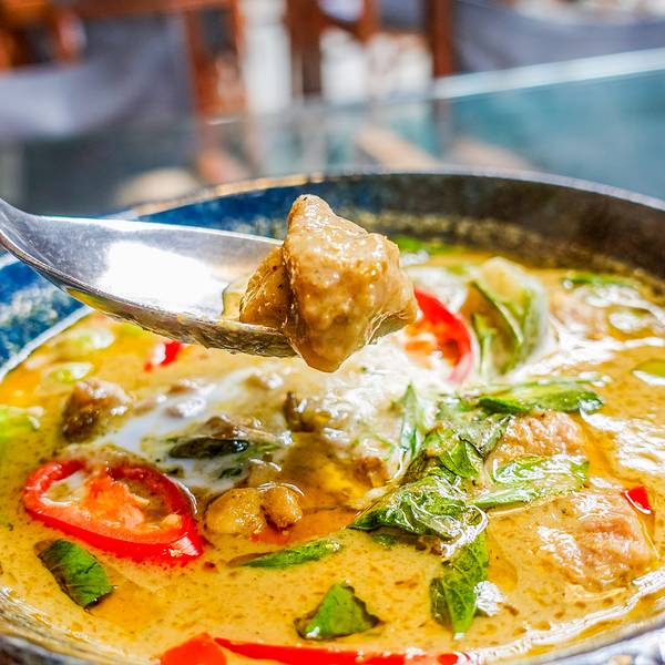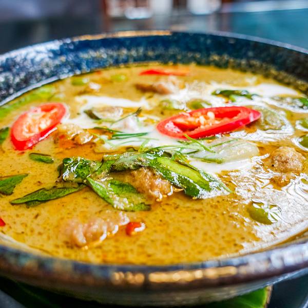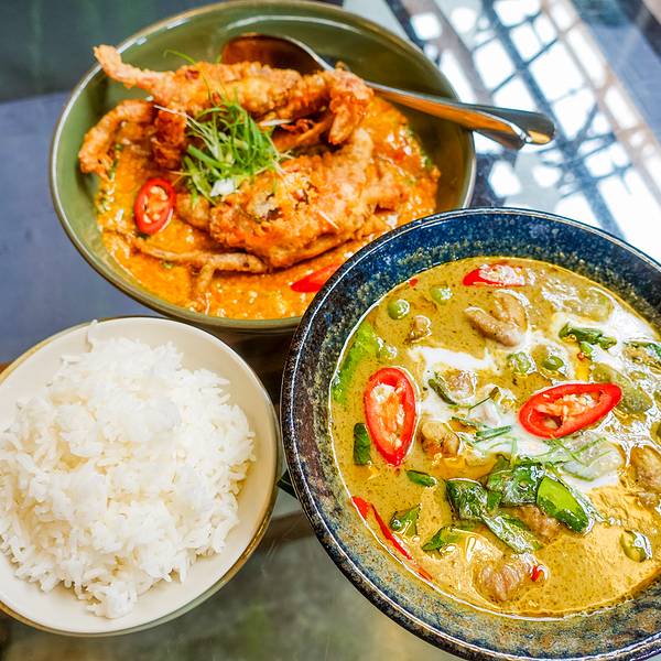 服务员们真得非常Nice,如果需要拍照,尽情去找他们帮忙吧。The Never Ending Summer的菜系其实算是泰式新派融合菜,看似熟悉的菜品都有着传统泰国菜肴的影子,但味道方面真的是颇具新意,一口就能让你的味蕾开启全新的体验。一杯忘记名字的夏日特饮,果汁打底,却又有梅子的酸涩,这种酸甜交织的体验,像极了恋爱的感觉。香醇浓郁的绿咖喱,同样让人非常惊艳,大块的牛肉口感极佳,咖喱汤汁吃起来也是鲜香柔和,绝对是白米饭的不二杀手。而最值得推荐的,必须是这里的软壳蟹,不怎么爱吃海鲜的我,都因为这道菜从此人生翻开了崭新的一页!蟹壳又脆又嫩,所有部位可以不费任何功夫地无差别品鉴,再拌上浓郁的咖喱,应该是那个夏天在曼谷吃到的最棒美食了!