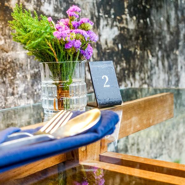 餐厅的用餐区域目前分为两处,一处是上图的The Summer House Project,通透的空间和开放式的厨房是最明显的特征,另一处则是餐厅原本的大堂,也就是让The Never Ending Summer一举成名的地方。走进餐厅,就像走进一个银色系的厂房,浓浓的工业风中不乏金属质感的装饰,精心摆列的绿植带来清凉之感,也让这稍显粗犷的画风多了几分活泼。我更宁愿用“颓废中的精美”来形容餐厅给我的感受,也许这种杂糅的Fusion,正是餐厅文艺气息爆棚的根本所在。厨房被透明的玻璃隔开,餐厅的通透感得到进一步增强,自然光+吊灯的采光设计,更是让整片区域的立体感十足,既有Loft般的逼格,但又不会让人产生过于空旷的距离感,设计方面可谓非常精准。任意角度的一瞥,看到的画面都能如散文诗般优美而浪漫,而长椅、沙发、餐桌、高脚灯等元素的点缀,也让餐厅多了几分家一般的温馨。就在我在餐厅踱步、意犹未尽的时候,服务员提醒我所有的餐食已经准备就绪,回到座位,开始享受这顿一个人的丰盛大餐。