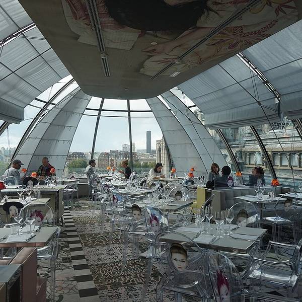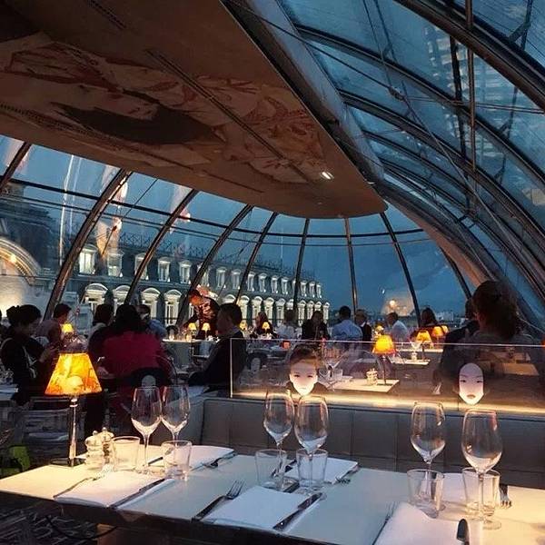 巴黎时尚的餐厅,以太空舱为概念联想,大面积的透明落地玻璃和屋顶,使室外的美丽风景一览无遗。餐厅位于建筑的顶层,视野宽阔,可以俯瞰巴黎城市的风景。