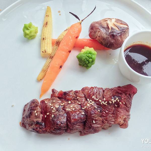 有一些亚洲口味的创意菜,鱼做的非常棒,烤大虾也很好,配菜比较少。餐厅位置很好,视野极佳