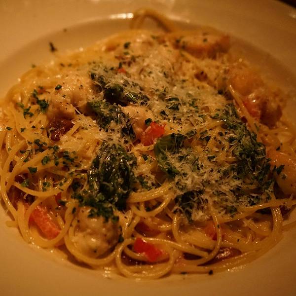 七点左右 吃饭等位的还挺多 拿了等位牌 再逛一逛广场也没等多久等位机就震了起来 因为虽然等位的人不少 但餐厅里面非常大 而且 也装修得挺豪华点了两个主食 其实足够了 但因为这里的店名就叫芝士蛋糕 不点两个似乎有点对不起Penny 结果就是主食也没吃完 蛋糕打了包带上灰机汉堡分量非常足 但不知道是不是已经吃了太多汉堡的关系 觉得并不好吃 甚至吃到后面还有点恶心意面还不错 不过他家放芝士大概不要钱 到后来也有点腻蛋糕确实不错 所以给这家店的总结是 吃正餐还不如来吃个下午茶