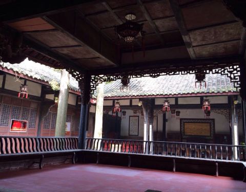 特别是它在中后殿之间的天井里还伸出一个小戏台,构思独特,环境空间布局十分完美,为四川客家会馆中...