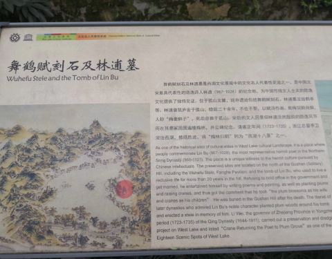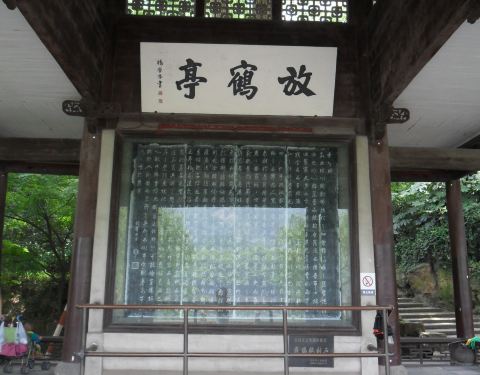 放鹤亭和林和靖墓面对里西湖景色优美.是元代人为纪念大名鼎鼎的宋代隐士林和靖而建的.林居孤山二十年,种梅养鹤,有"梅妻鹤子"的传说.亭壁市清康熙帝临明董其昌书南朝鲍照得"舞鹤赋"石刻.