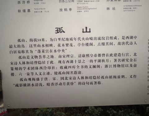 孤山,原本是西湖中的孤岛,后来清淤筑堤,使得孤山变成了半岛。放鹤亭,就是梅妻鹤子故事的发生地,孤山不孤,断桥不断!不错!