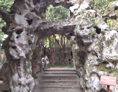道观外有一石亭,可供游人登山休憩。院内假山与古树都很别致,香火不是很盛