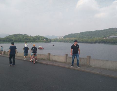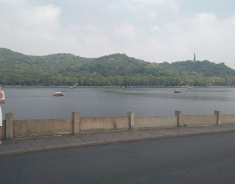...上,过了锦带桥步行不远就是断桥,游人如织,在桥边看着湖上游船,湖边青山,人面青山相对,特别漂亮