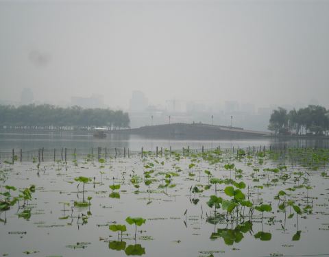 白堤中段有锦带桥,旧称碧涵桥,虽然名声没有断桥那么响亮,但自有一种动人的情趣。锦带桥之佳佳在里外西湖的一桥相通,碧波相连,却里外有别。小船咿呀过桥洞,从万顷碧波渐入藕花深处,水天一碧变成了闹红一舸...